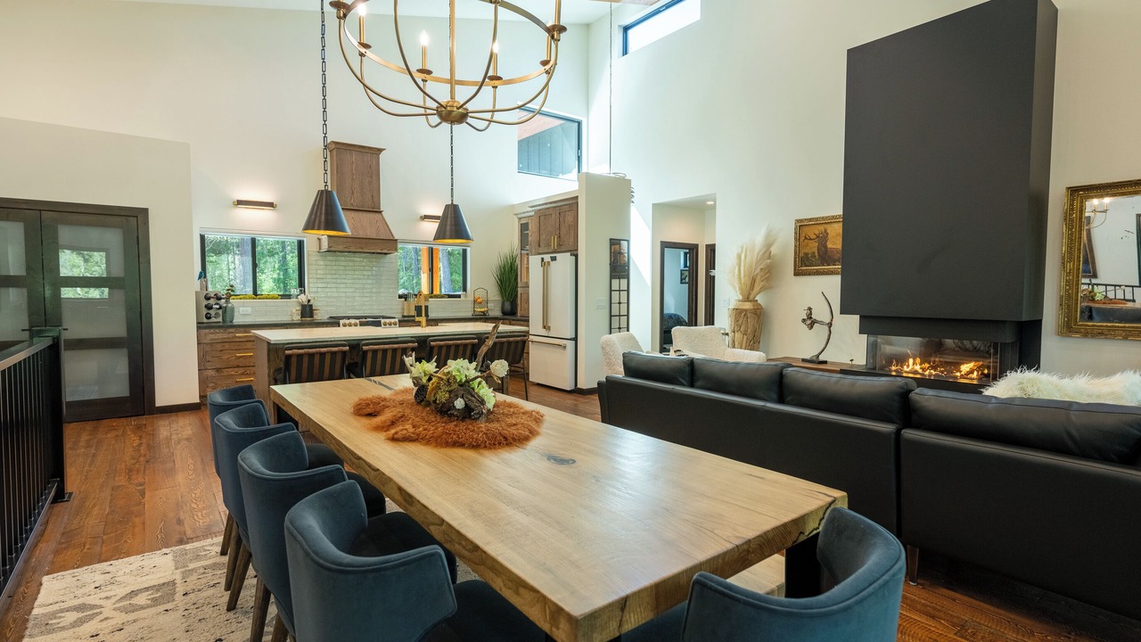 Another special feature is the hydraulic lift coffee bar window which opens up to bring the outdoors in! Enjoy dinner making meals with the use of the Traeger or Blackstone grill and relax surrounded by scenic mountains and the view of Flathead River and its wildlife. Spend the cool mornings or beautiful evenings enjoying the 7-person salt water hot tub and listen to the Elk bugle in the fall and watch the eagles fish year-round. Gather for conversation & coffee or cocktails by the fire table. Whether you're exploring the nearby attractions or simply relaxing in the spacious home with its many amenities, you will truly feel on vacation. The home is set up with Starlink WIFI & a Sonos music system which allows you to listen to different music in each part of the house.