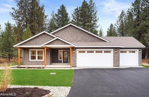 NEW HOME IN DOVER BAY on a cul-de-sac in Estuary Forest. One level living on a private, oversized lot (nearly half an acre!). Relax on the oversized covered back deck and watch deer, moose and an assortment of birdlife wander through the forested backyard. Share s'mores and tall tales around the campfire. The interior of the home offers an open concept floorplan with beautiful views from nearly every room. Finishes include custom cabinets, quartz countertops & LVP flooring. Bertazzoni appliances, large pantry and optional dining at the bar with access to the back deck/yard compliment the kitchen. Ensuite primary bedroom is a mini-retreat, complete with a spa-like bathroom/curbless, two head shower, double vanity and walk-in closet. Take advantage of nearby community amentities; 9 miles of onsite trails, boat launch/marina, fitness center & public beach area. Access to a 400+ acre trail system is nearby too, as well as a paved bike path leading back to Sandpoint.