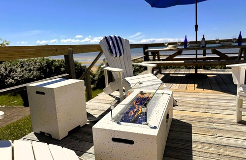 Step outside to discover your own private beachfront haven. Lounge on the expansive deck that overlooks the sandy shores and enjoy mesmerizing sunsets over the bay. The private stairs lead directly to the private beach, allowing you to stroll along the shoreline or take a refreshing dip in the ocean whenever you please. New lounge furniture on the deck allows you to arrange a seating area or even a napping bed if you so choose! A fire pit on the deck and one on the patio below allows your group to mingle between the two homes and the hanging sunset chairs are sure to be a favorite spot for relaxing while watching the amazing sunsets each night.