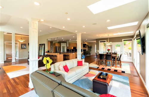 This Private Gated luxury home is located in the Willamette wine country on 25 beautiful acres with 360-degree Panoramic Mountain & Valley Views yet close to the high-tech corridor. Custom built home perfectly positioned on beautiful acreage to take advantage of the incredible valley and mountain range views. You’ll feel like you're staying in a piece of heaven! Property has been completely remodeled with beautiful finishes, all new furniture and seven high-end 65" or larger Samsung Smart, bidet's and so much more! We are thrilled to add these new enhancements for you to enjoy.