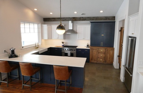 The rooms are nearly as glorious as the landscape that frames them, with a luxury 5 star hotel feel. All individually inspired by the mountains and meadows of the countryside. Each bedroom has hotel style bedding, down comforters, plenty of pillows and noteworthy mattresses for a great rest. One room features flexibility for King or Twin beds, while the others are all Kings. The two upstairs bathrooms beacon you to enjoy a soak in the claw foot tub in the classical marble bathrooms. Downstairs custom tile showers and double vanities will make everyone feel like they picked the best room!