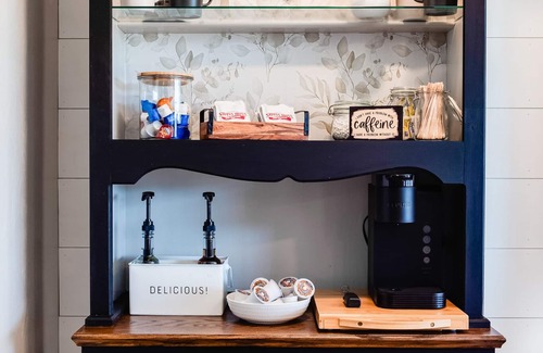 *Lovely coffee bar stocked with coffee, creamer, sugar, hot chocolate, Kerrigan, etc. Help yourself!