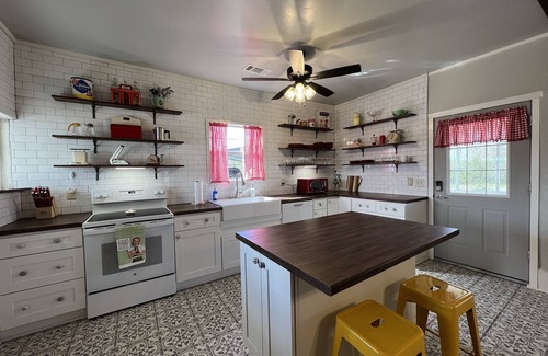 The house may be old, but modern amenities abound in this unique rental. High speed WiFi, two TV's, fully stocked kitchen supplies, antique tub with shower, dedicated office and brand new HVAC.