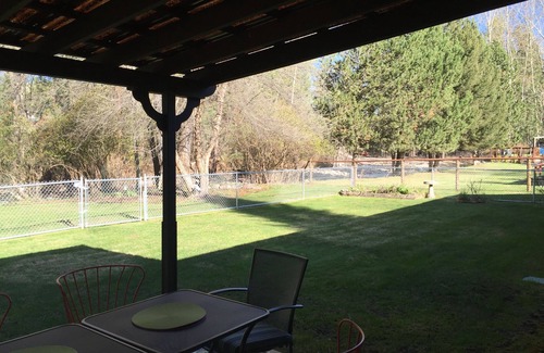 This three bedroom, two bath ranch style home on the beautiful Rattlesnake Creek features a patio for creek side dinners and viewing. The master bedroom includes a king size bed and en suite bathroom. Both queen bedrooms include desks for personal electronics. All the amenities of home...wifi, cable and more importantly what you don't, the serenity of the rushing Rattlesnake lulling you to sleep.
