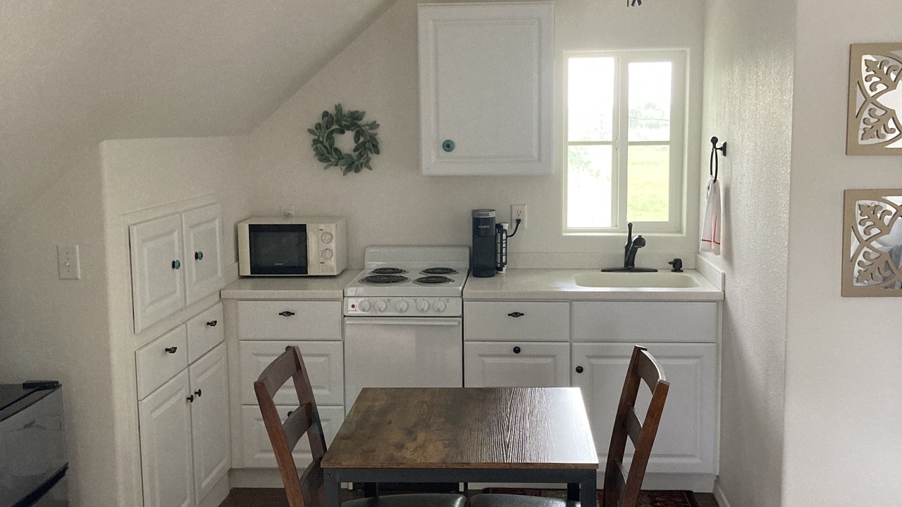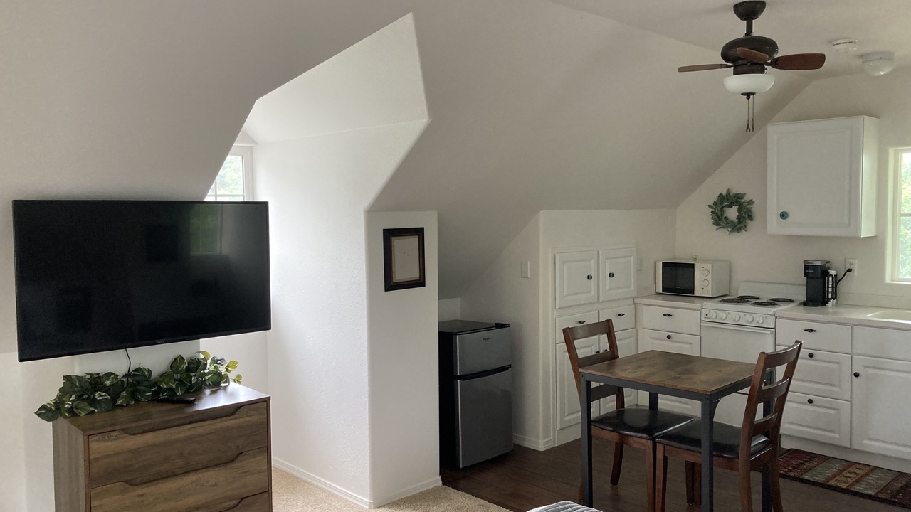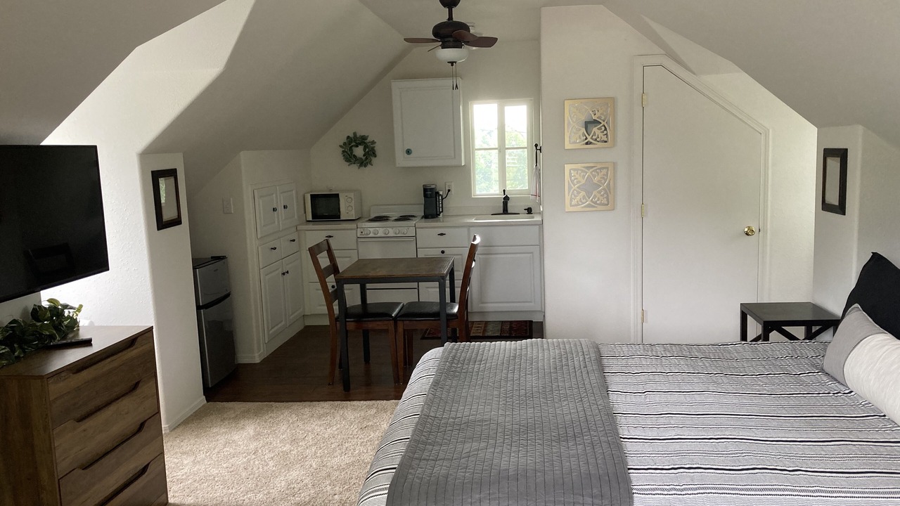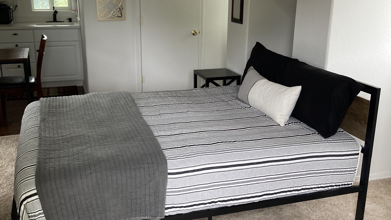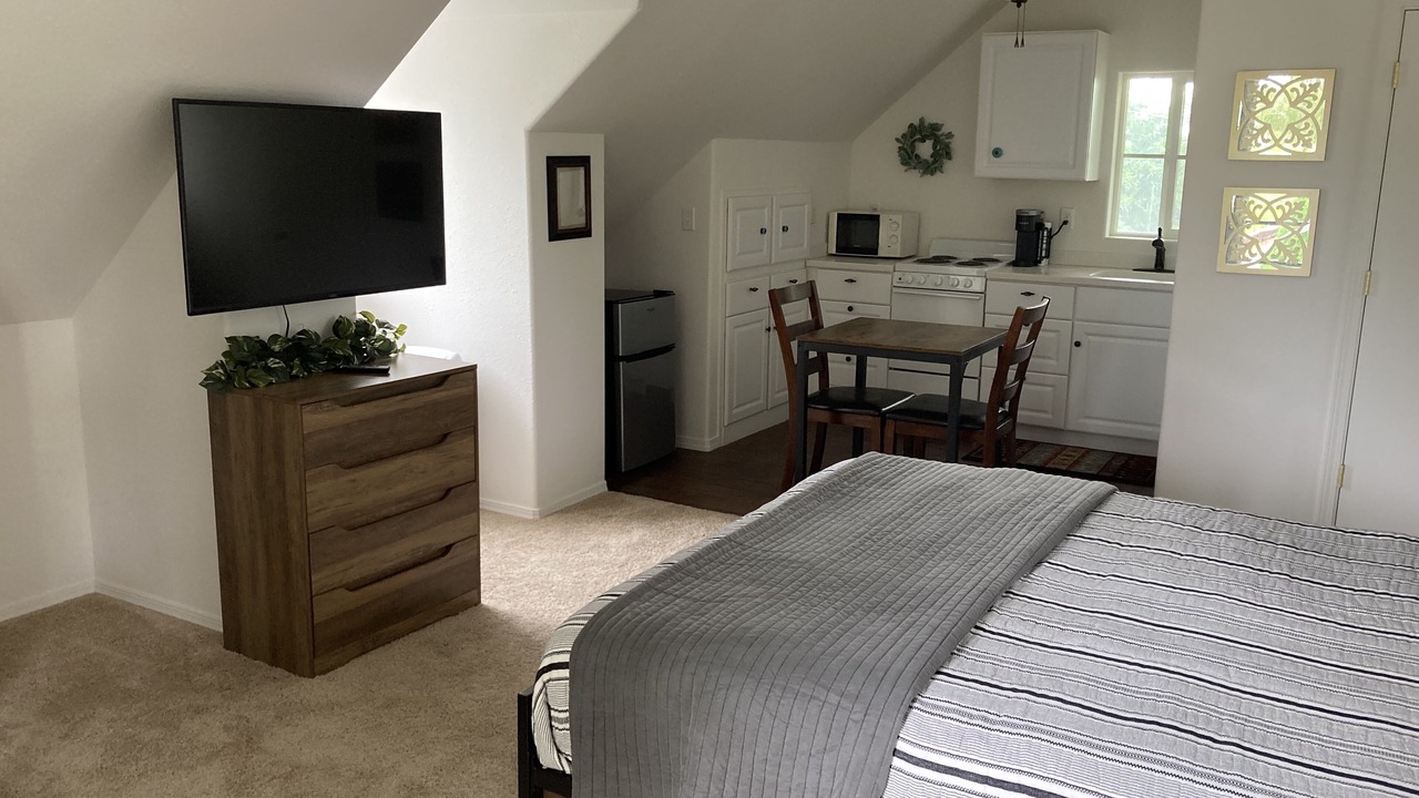 This modern studio apartment is the perfect getaway in a great park-like setting. Close to popular attractions in beautiful Hagerman valley including: local hot springs, swimming, hiking, kayaking, hunting, parks, visitor's center, restaurants and grocery stores. Located right across the street is a bird refuge and wildlife management area, so there are countless varieties of birds and wildlife on the property. Included is a comfortable queen sized bed, work desk, TV, wifi, storage, bathroom with standup shower, kitchen with mini fridge, stove/oven, coffee maker, etc. Private cement pad for parking.