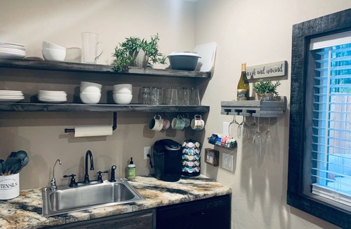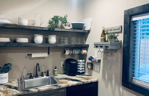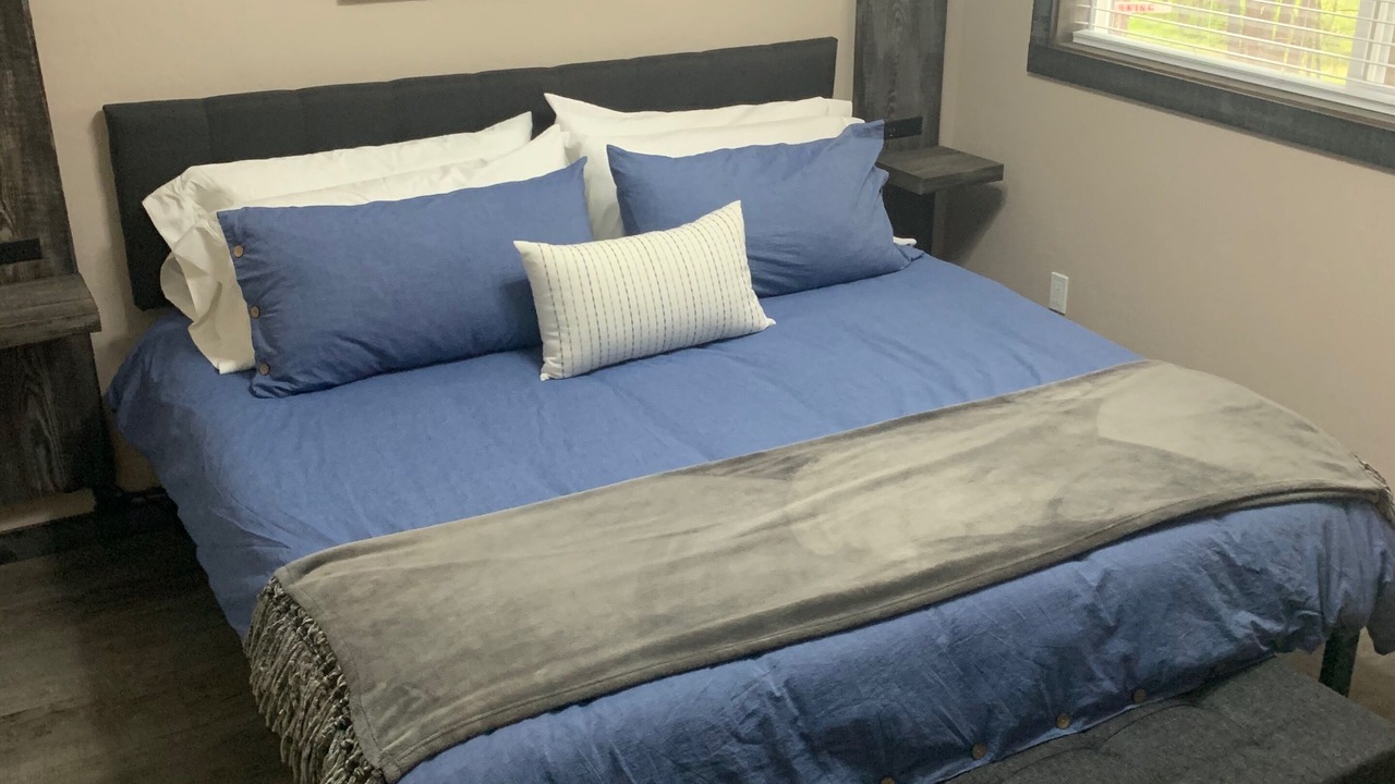 Sleep comfortably in our King bed, take advantage of our fully loaded kitchen and relax on the private outdoor deck with grill and propane fire pit. The living room features a full sleeper sofa & twin sleeper sofa with upgraded memory foam mattresses. We have soft water as well as reverse osmosis on kitchen sink faucet.
