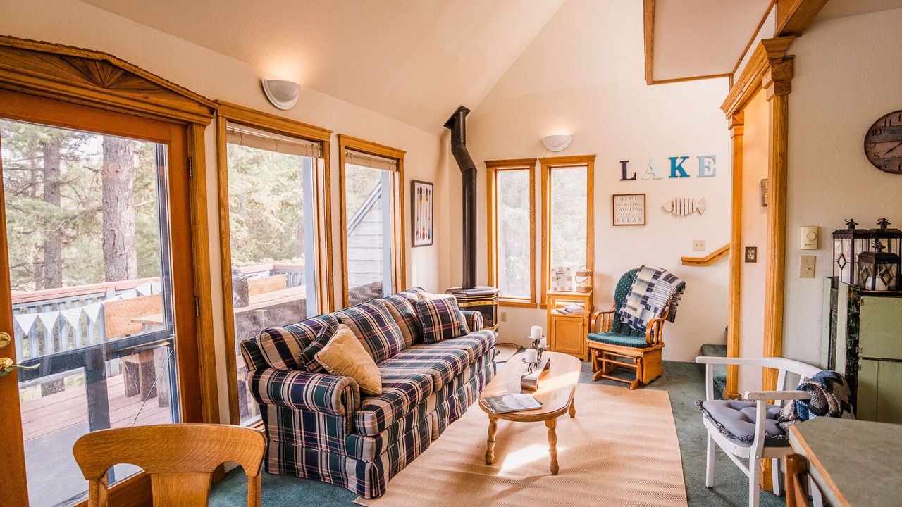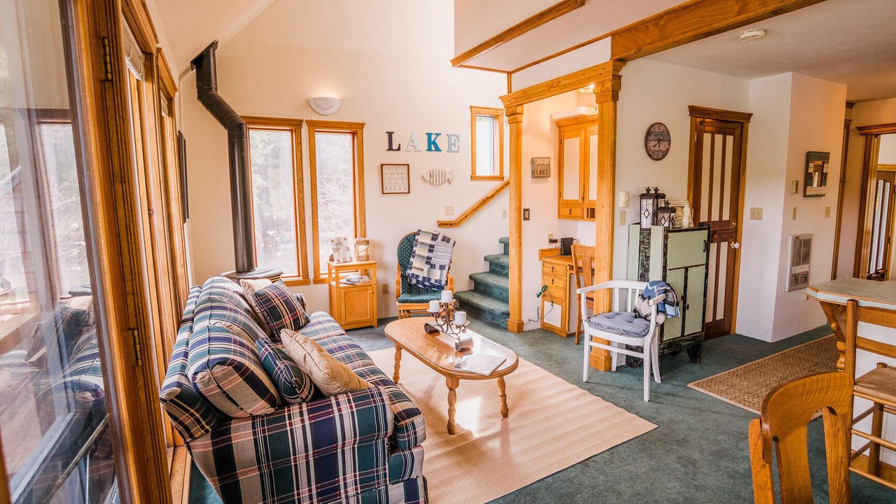 Three bedrooms, two and a half baths, and a double deck overlooking a crystal clear lake with great fishing all contribute towards a great stay! With beautiful mountain views, this private hideaway is perfect for both families or romantic getaways. Fire ring, swing set, and a wide variety of wildlife in the area add to the fun!