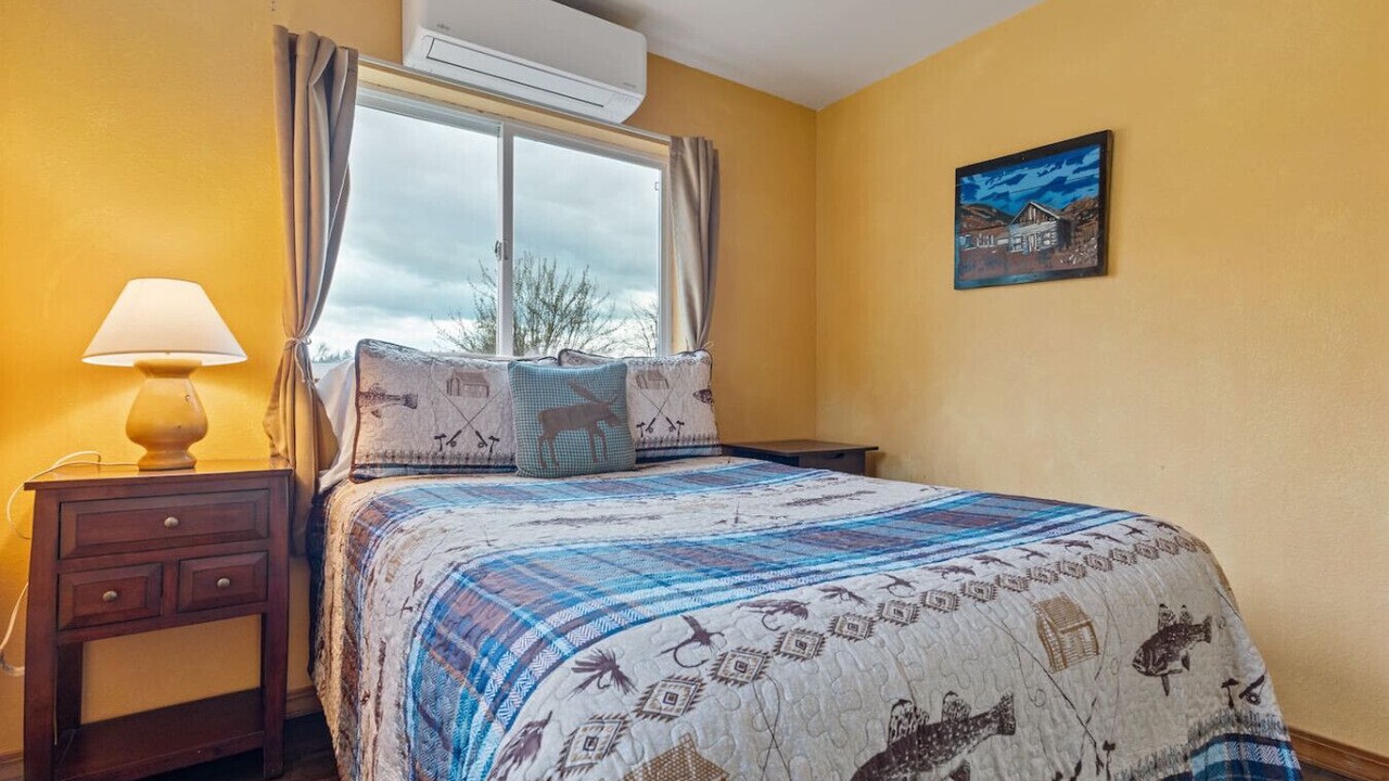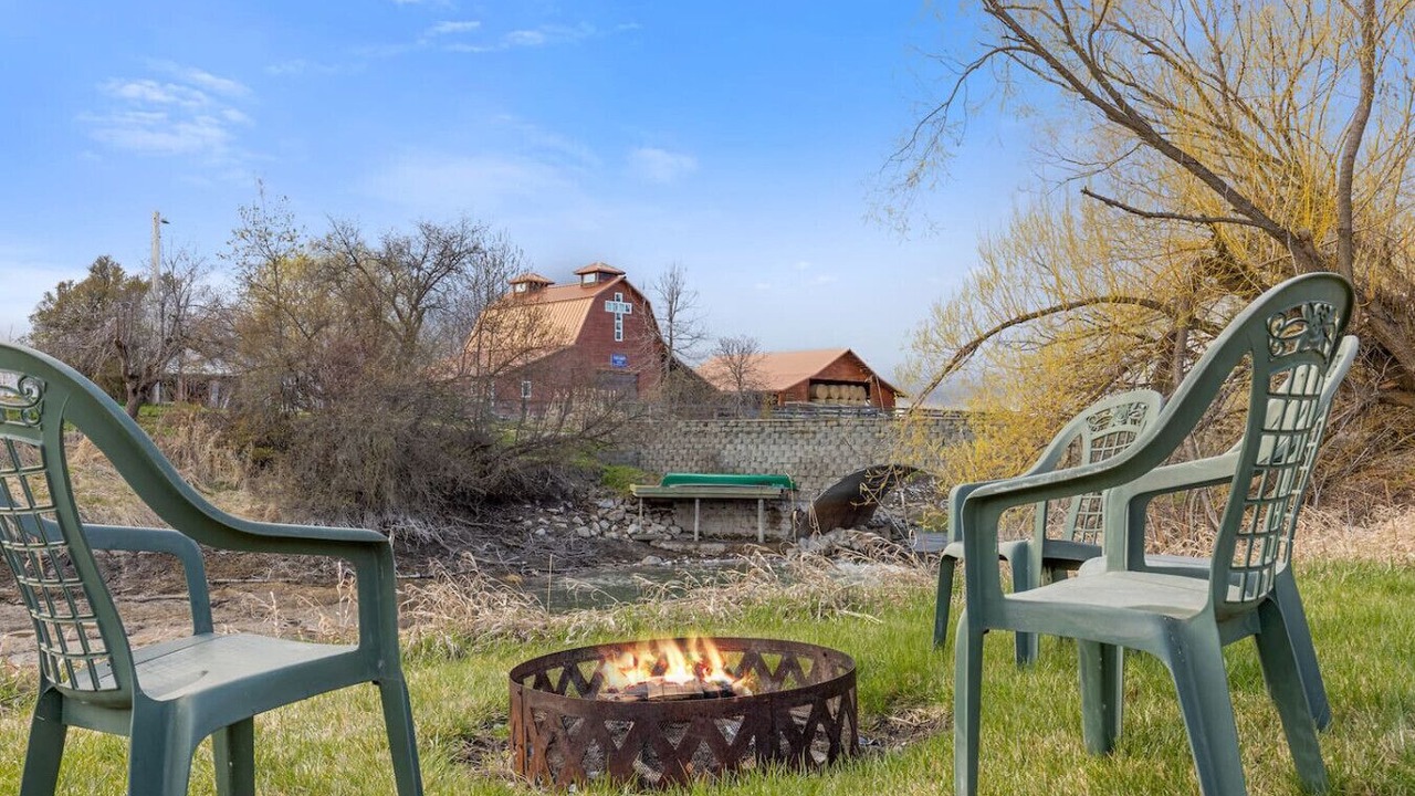 Step outside to enjoy the patio, a perfect place to unwind while taking in the view of the creek and surrounding mountains. Roast marshmallows around the fire pit, cast a line in the creek (fishing equipment not provided), or let your pup run around the fenced yard—this place was made for enjoying the outdoors.
