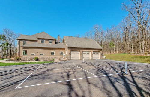 This custom built Central PA home is just 15 minutes from Danville and Lewisburg. There are 8 bedrooms and 6 bathrooms (Sleeps 20 comfortably), 3 living room/sitting areas all with Smart TVs, a huge basement game room, and beautiful custom Amish made cabinetry in the kitchen. The large center island holds the hibachi grill which is perfect for cooking up stir-fry or grilled sandwiches for dinner and pancakes for breakfast. Enjoy the forest and meadow views from the large dining room table (seating for 12) and be on the lookout for deer grazing in the yard out front. In the warmer months enjoy the patio area, lawn games, hot tub, fire pit, and pool (can be heated upon request). The pool is open from the middle of May- end of September. Hot tub is open year round.