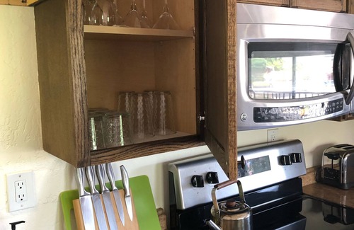 Completely appointed 1-bedroom /1-bath apartment perfect for the savvy traveler. Centrally located in the heart of West Sedona with the best views of the Mighty Thunder Mountain, 3 miles from "uptown". The suite is spacious, well-appointed and offers a excellent value choice for your Sedona home away from home. Your balcony has a table and chairs right outside the sliding-glass doors in the living room, provides a front-row seat to the mystical and colorful shadows on the Mighty Thunder Mountain. The private spacious bedroom has an adjoining bath and is located in the back of the suite backed up the forest, and very quiet.