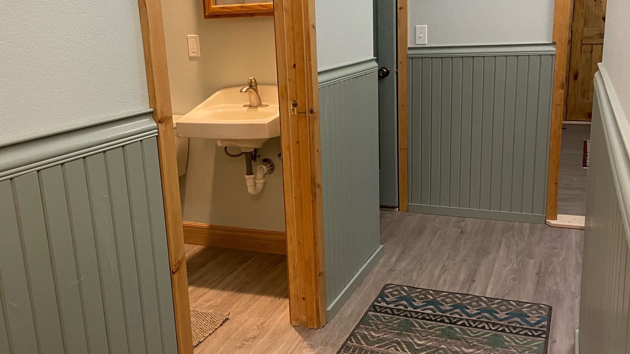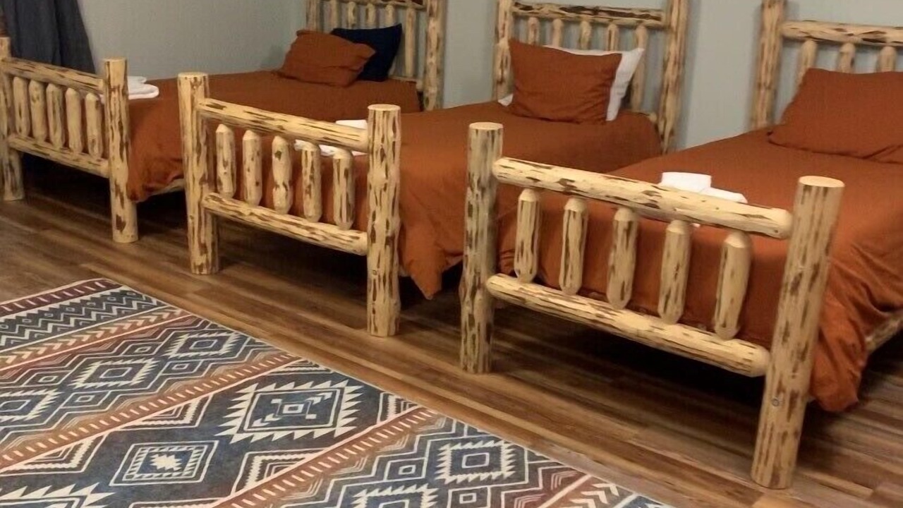 Halfmoon Hollow Lodge features modern log decor and bright clean open spaces.