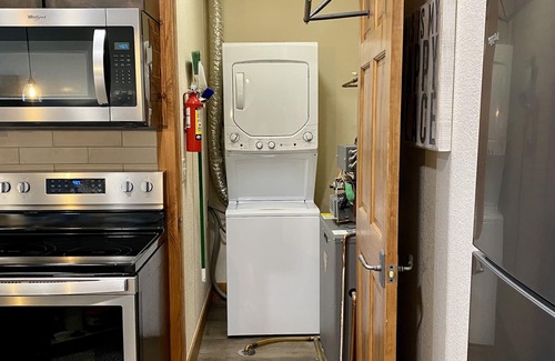 A renovated ski-in/ski-out, ground-level condo with locking ski closet just outside the front door. No stairs inside or out. Fast Wi-Fi . Unit sleeps 5 plus a roll-away for 6 total. It’s a 2 bed/2 bath. King Tempur-Pedic mattress in master bedroom with own master bath. Extra-long twin adult-sized bunk bed and a twin bed in second bedroom. There is a twin roll-away bed and a pack-n-play for little ones. Condo has a private balcony, gas fireplace, well-equipped kitchen, washer/dryer in unit, and cozy living room with 50-inch HD smart tv and HD cable. Or you can bring your own tv subscription to stream via Apple AirPlay or Chromecast. Master bedroom has a 40-inch smart tv with HD cable and can also stream via Apple AirPlay and Chromecast. Guest bedroom has a 32-inch smart tv with streaming. There is an Apple HomePod mini speaker for your music or podcast enjoyment. Our guests have access to two hot tubs located at the KickingHorse Lodges. Guests may also use the heated swimming pool and hot tub located at Ranch Hall near Base Camp for a $10/person fee. Private entrance and close parking makes this condo a great vacation experience.