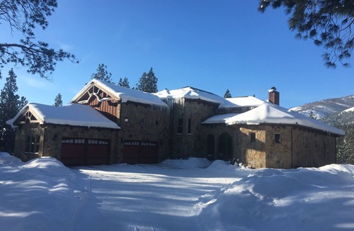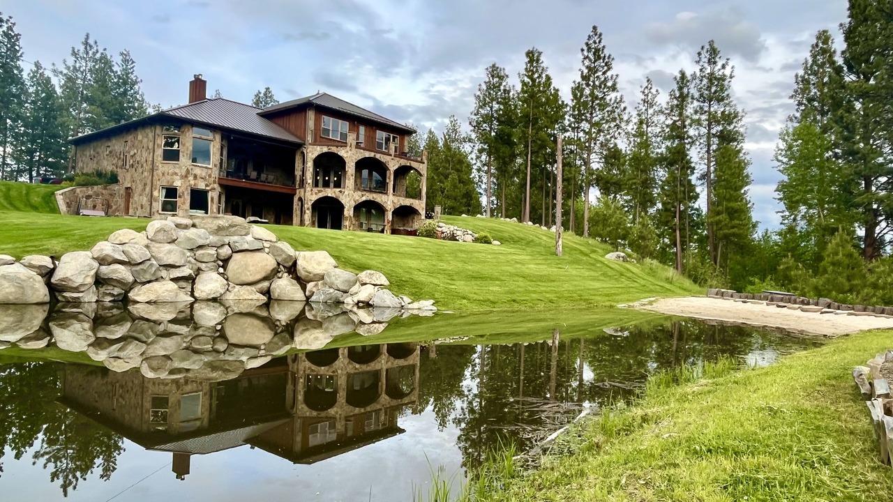Indulge in the ultimate Montana retreat at our stunning mountain sanctuary. Nestled within the breathtaking Bitterroot Mountains, this expansive estate is the largest home in the area and spans 16 acres of picturesque riverfront terrain, boasting a serene pond just steps from your door. Private helipad available for guest use.