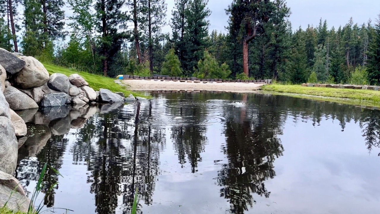 Without even leaving the property, even young anglers can reel in impressive trout ranging from 9 to 22 inches just a few steps from the back porch. The pond includes a sandy beach area with kayaks, canoes, paddle boat, paddle board, beach toys, and even a 15 foot rock wall for jumping in. In winter, the pond transforms into a delightful ice skating rink, equipped with an array of ice skates to fit every member of the family.