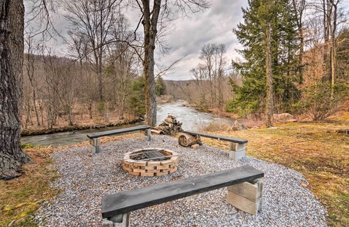 Unplug by the water at 'The Riverside Lodge,' a 6-bedroom, 4-bath Wilcox vacation rental set right on the Clarion River. With a 5,000-square-foot interior and a lush waterfront ripe for exploring, it's made for a rip-roaring adventure or a low-key retreat. Reel in trout from the backyard, sip something cold on the porch, and end the day roasting hot dogs over the fire pit.