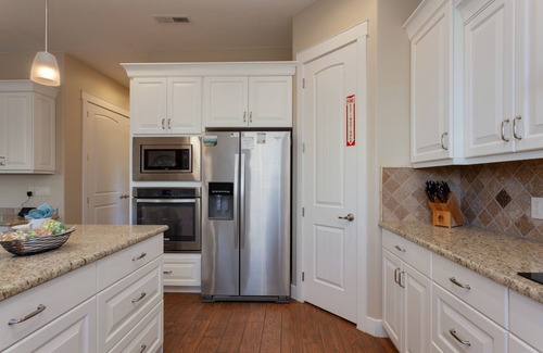 This modern 4 bedrooms 3.5 bathroom home can sleep 10 people comfortably, The master bedroom downstairs features a King bed, as well as a smart TV with cable access provided for your use! The master ensuite bathroom hosts a large jetted tub, double vanity, walk-in shower, and a spacious walk-in closet. The additional downstairs bedroom features a King bed as well as a brand new smart TV. Upstairs, a King suite hosts another smart TV as well as an ensuite bathroom. To the right, you'll find the bunk room, the bunk room hosts 1 twin bunk, and 1 twin-over-full bunk as well as a smart TV and 2 twin murphy beds. In the loft there is another smart TV as well as access to a large balcony overlooking the beautiful backyard and pool. With new appliances, remote controlled blinds, a private pool and more, this vacation home is sure to be a new favorite destination for years to come!
