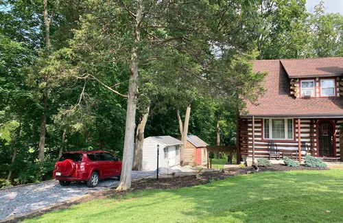 Serene waterfront Log cabin home close to Gettysburg Kayak, fishing and deck | Cottage in New Oxford
