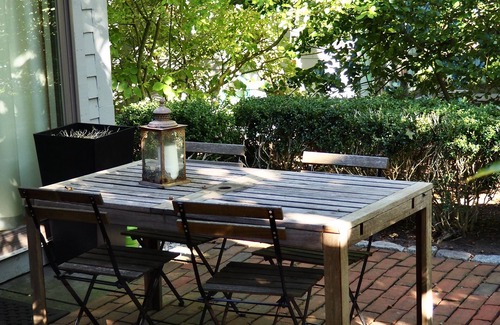 * Gas grill and outdoor dining area for summer cookouts