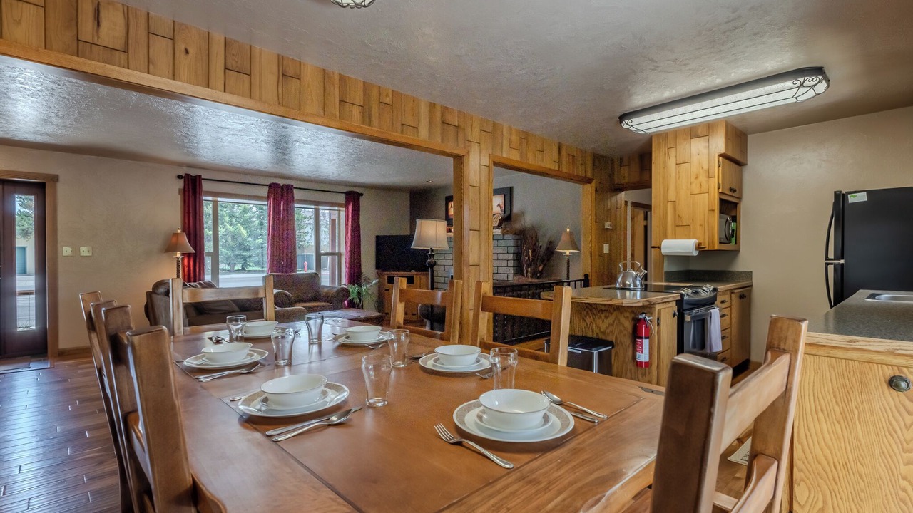 Rangers Retreat had 3 Bedrooms and 2 Bathrooms. 1 King Bedroom, 1 Queen Bedroom and 1 Queen and Twin Bedroom. There is also a twin rollaway bed for your use. Open floor plan with large kitchen table, full size refrigerator, Fire place, heated garage, just 5 blocks from Yellowstone National Park and just across the street from Gallatin National Forest. This family friendly, non smoking home is located within the city limits and 1 block from the city park. WIFI, satellite TV, movies, books, games and a gas fireplace are just a few of the reasons you are gonna love this vacation rental. For larger groups, you can add additional sleeping by renting one of the 3 adjacent cabins, Whiskey Springs, Burnt Hole, or the Montana Cabin!
