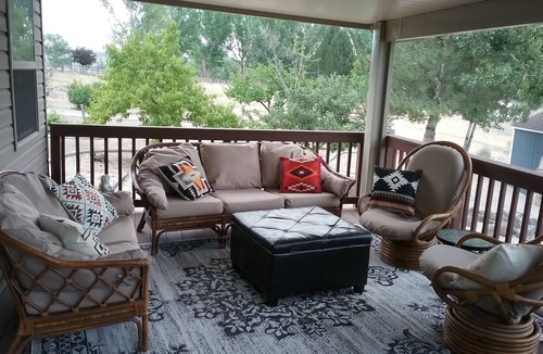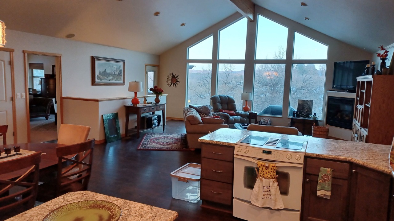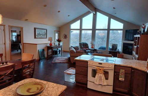 360 degree view. Spacious 2700 sq ft View Ranch 5bd/2.5bath sleeps 10 and backs to Mud Creek in the Snake River Canyon on the Thousand Springs Byway. Relax and enjoy this amazing vacation retreat listening to the Mud Creek waterfall! Wildlife abounds. Close to everything! Banbury/Blue Heart and Miracle Hot Springs. Year around Clear Lakes Public Golf Course. Balanced Rock. Box Canyon. Ritter Island. Holesinsky Winery. Tennis Court. Fishing. Close to parks and playground. Minutes to the quaint town of Buhl for shopping or dining. 20min to downtown Twin Falls for more options. Plenty of space to spread out and relax. This home has it all. Large great room with expansive floor to ceiling windows with fireplace to take in the view and enjoy the wildlife. Modern fully stocked kitchen. 5 Spacious bedrooms spread out for everyone to have their own private space.