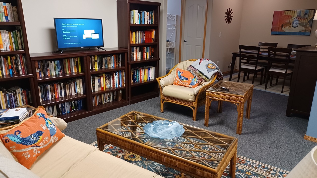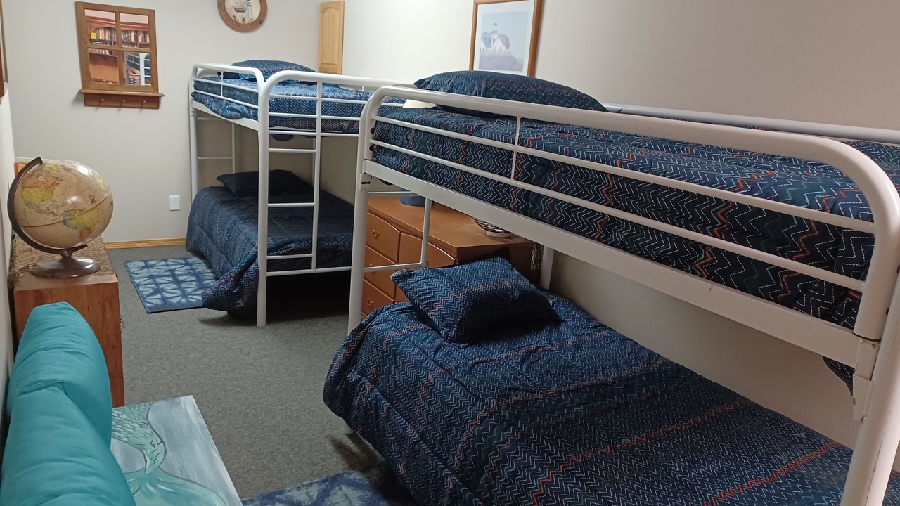 Downstairs includes extra bunkbeds for the kids to sleep in their own area. Familyroom with library. A workdesk and a 2nd dining area or game table. Walkout covered patio. Large covered deck. Outdoor propane firetable. Covered front porch. 2 large outdoor patios with several picnic tables to enjoy the 360 degree views around the property. Darksky stargazing are a highlight. You won't want to leave! Plenty of amenities to enjoy including games and 3 TV's. Very walkable area. Feel free to bring bikes, kayaks, fishing gear. Places nearby have rentals too.
