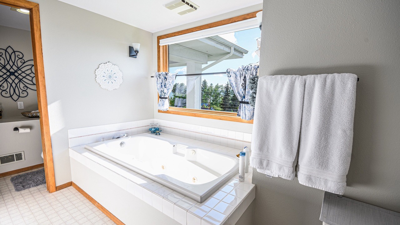 Refresh and rejuvenate in the downstairs bathroom with Jacuzzi tub and separate shower.