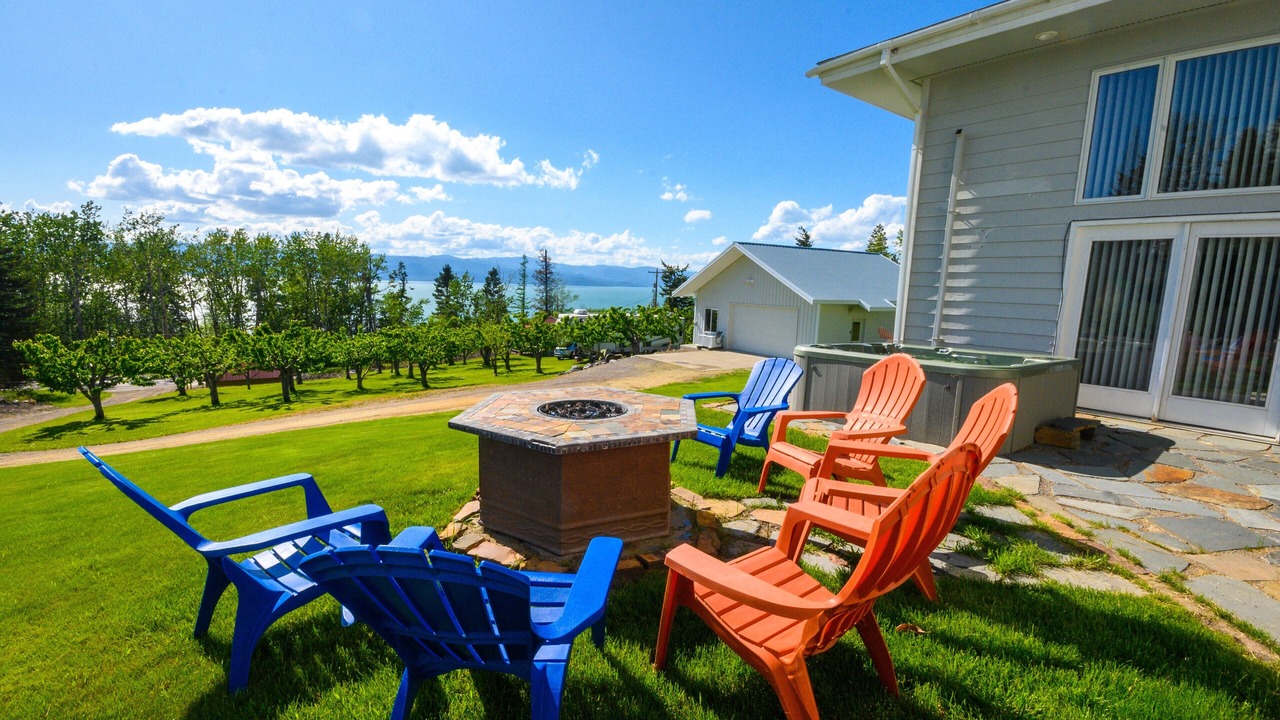 Plan an unforgettable stay for up to 10 in this spacious, tri-level home with spectacular views of Flathead Lake. Perfect for 2 families/groups traveling together; attached Tower portion provides 2 bedrooms of private space. You’ll love relaxing in the hot tub and gathering the group around the firepit. Enjoy grilling and dining on the BBQ patio with a gas grill and seating for 12. All beds are kings at Cherry Tree. The “cherry on top” includes spring cherry blossoms and summer cherries to enjoy.