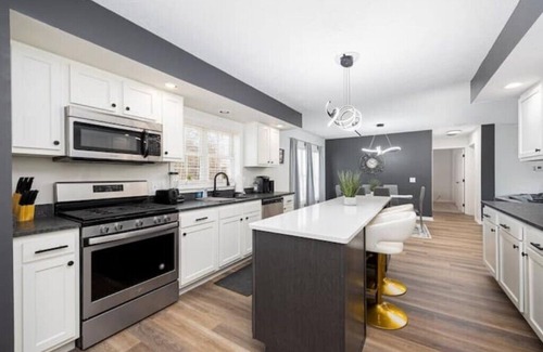 Discover the Heart of Grove City from our Stylish One-Story Retreat! Located near Broadway, where endless dining and entertainment options await, our chic Airbnb promises convenience and comfort. With no steps to worry about, our space offers accessibility for all. Enjoy the fully stocked kitchen, unwind with 4 Smart TVs, and lounge in the spacious living room and bedrooms. Your perfect weekend getaway awaits!