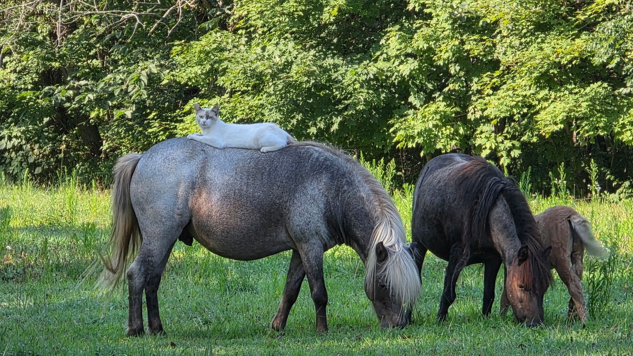 Farm animals. (Miniature horses, cows at times, Snowball the cat) Backyard Patio with a fire pit and a removable grill. Playground area. Hammock and Dbl. lawn swing. Above ground pool during the summer months. Trails throughout the woods. Another fire pit back in our wooded area.