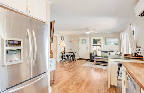 When you step inside this beautifully remodeled cabin, you will be greeted with an open concept floorplan complete with a fully equipped kitchen, living room with a smart TV and high quality throws to cozy up with, a fireplace, boardgames, a full bathroom with a walk-in shower (stocked with the needed essentials for your stay), and two bedrooms- one which is the primary bedroom with a queen bed, and the other room has a bunk bed with a double sized bed on the bottom and a double sized bed on the top. You will be feeling at home from the moment you arrive!