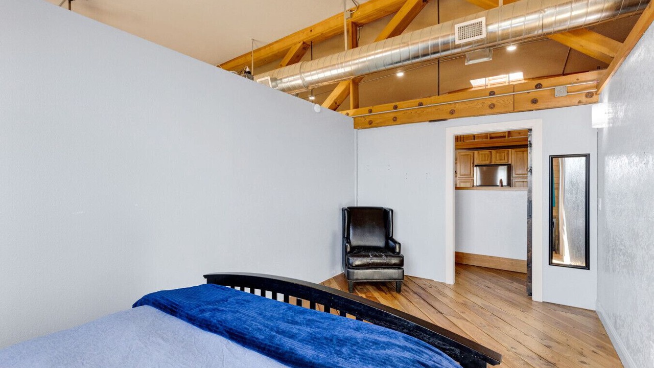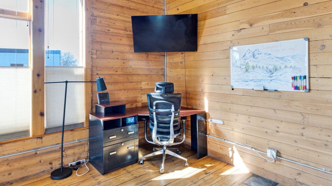 The loft is completely private and attached to a brand-new local golf simulator business (operating hours: 12 PM – 9 PM). Whether you're here for work or play, The Loft on 1st Street provides a comfortable, well-located space within walking distance to all that downtown Hamilton has to offer — just steps from the local fly shop and the weekly farmers market.