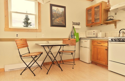 This lovely, romantic one room cottage with a bathroom is an idyllic in-town studio for a single or a couple with one child. Kitchen with all the amenities, jetted tub/shower, stereo and DVD TV, wireless DSL, and the perfect combination of elegance and hominess for the real Teton Valley experience.