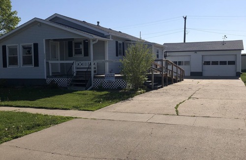 This completely remodeled home is offered to our valued guests for your short term housing needs. The home is pleasantly furnished with new kitchen and appliances, new washer and dryer, water softener and new beds so comfortable you may not want to leave! The home offers a front porch just like Grandpa and Grandma used to sit on and tell lies to each other and an oversized detached garage Grandpa ended up in after he got in trouble! I mentioned the rhubarb patch and hopefully weather permitting we'll polish up on my farming abilities and get a garden planted so you can go pull some weeds for some stress relief, not that you would have any stress after staying in this beautiful home! Ring brand doorbell in use.