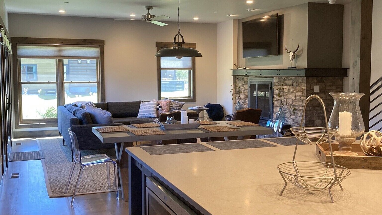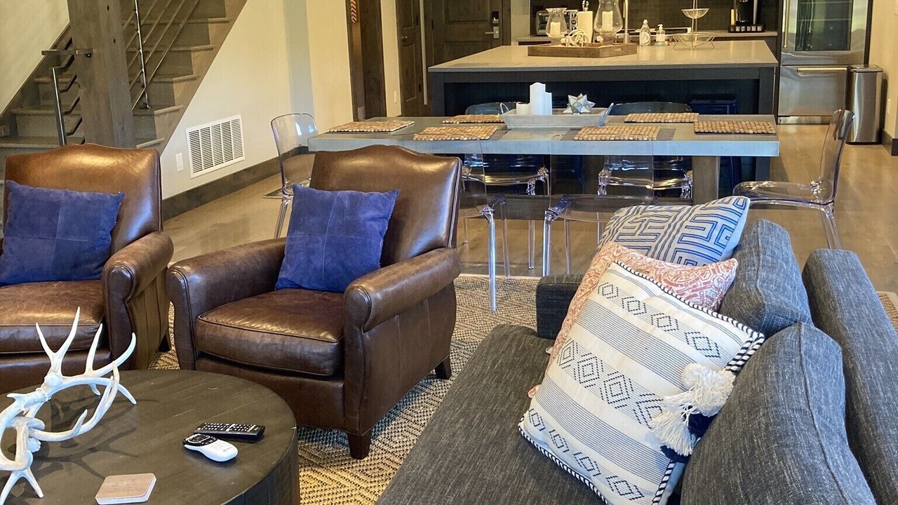 Be one of the exclusive few to enjoy this new modern rustic luxury home in Town Center. Enjoy mountain views with your coffee. This custom built contemporary home has high end interior finishes including professional quality kitchen appliances (Wolf cook-top, oven and microwave/convection; and Sub Zero refrigerator, freezer and beverage cooler); all the cooking equipment to make your favorite meal; large Weber grill; cozy and warm gas fireplace (no need to haul in wood); heated garage large enough to hold your auto and sporting equipment (even equipped with a boot/helmet/glove dryer.) The family room is large for all to gather to enjoy conversation by the fireplace or watch the large flat screen Smart television.