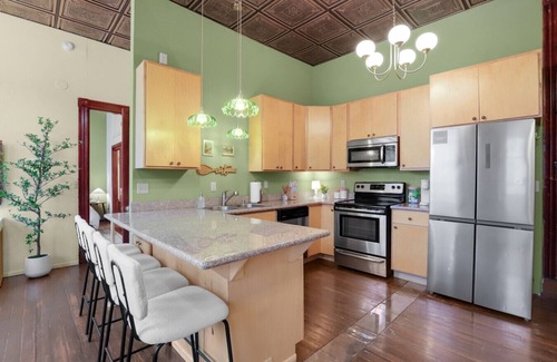 The modern and comfy getaway will leave you in awe with its carefully picked amenity. Historic wooden floors extend throughout the entire apartment with modern tile touches.
