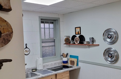 Step back in time. Opened in 1936, the Station was originally used as the office for Carl's Station and Cabins. Filed with memorabilia from by-gone years, we have transformed Carl's old office into a comfortable room with all modern amenities. The Station features two full size beds, a 55 inch TV with UTube TV, a large walk-in shower, a 2 burner induction stovetop, microwave, air fryer, crockpot and toaster. It also has pots, pans, silverware, plates, bowls, glasses andcooking utensils. Coffee maker with complimentary coffee to start your morning off right.Everything you need to feel right at home.