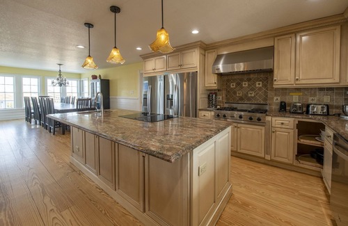 * **✔ 3 State-of-the-Art Gourmet Kitchens** – Featuring commercial-grade stainless steel appliances (multiple ovens, dishwashers, refrigerators), vast counter space, and ample seating for effortless catering to large groups. 👨🍳🍽️