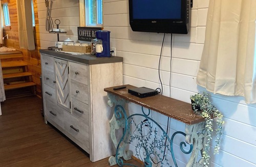 This tiny home is the prefect place to relax and get away. Gated resort with access to a beach and boat ramp on the beautiful Tennessee River, so bring your boat or just relax on the beach. With plenty of amenities for you to enjoy from a grill, fire pit, covered picnic table, and Kayaks! This is the perfect place for you or your family. Come join us at this special tiny home at White Creeks Resort.