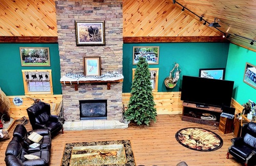 Grand open floorplan, warmth & ambiance awaits with our stunning fireplace for a cozy gathering. Relaxation and scenic beauty from our spectacular front porch. Sleeps fourteen. 10 Minutes from Punxsy Phil. Bring your kayak, canoe, bathing suits, we're 15minutes from Redbank Creek! Outside Firepit, shared pond. Golfcart, full kitchen.