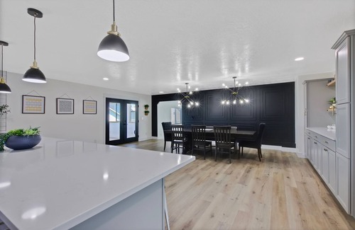 You have stumbled upon the most unique property within the Meridian Idaho area. This 6,000 sq ft fully remodeled home has 7 furnished bedrooms and large common areas available. The entire property is available for being rented, but in this listing we will focus on a hotel type of room rental including your own private bedroom with a king sized bed and one private bathroom as well as access to all common areas including a massive kitchen stocked with all appliances and basic cookware, dishes and utensils, a large dining room table with seating for 8, a bar area with seating for 4, a living room with a smart TV and fireplace, a sunroom with seating arrangements for six, a coffee bar with 2 Keurig's and plenty of mugs, a ballroom area, an upstairs reading nook, a laundry room with two washers and two dryers and a large open backyard space and plenty of parking in the front driveway.