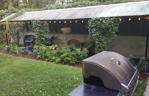 There is an enclosed, private outdoor area off the back of the house that has a covered area with outdoor furniture for you to use and enjoy. There is plenty of off beach parking with a one car garage the renter may use. There is a propane barbecue grill located in the back yard for you to use. There is a nice garden of perennials for you to enjoy in the back yard also. The house is a pleasant mix of cabin and beach house.