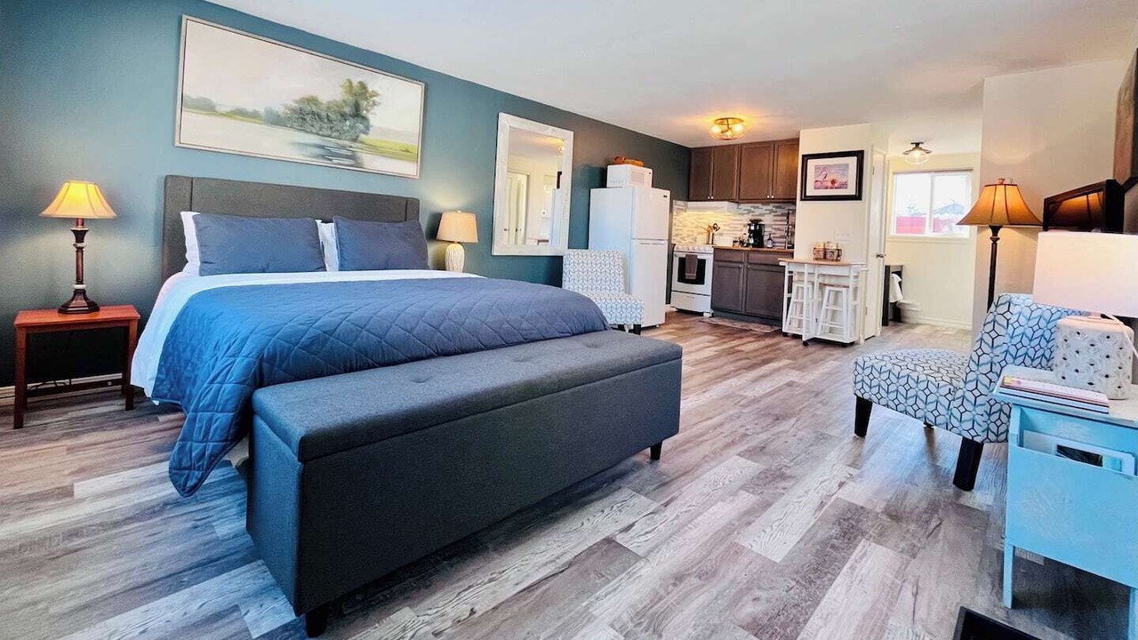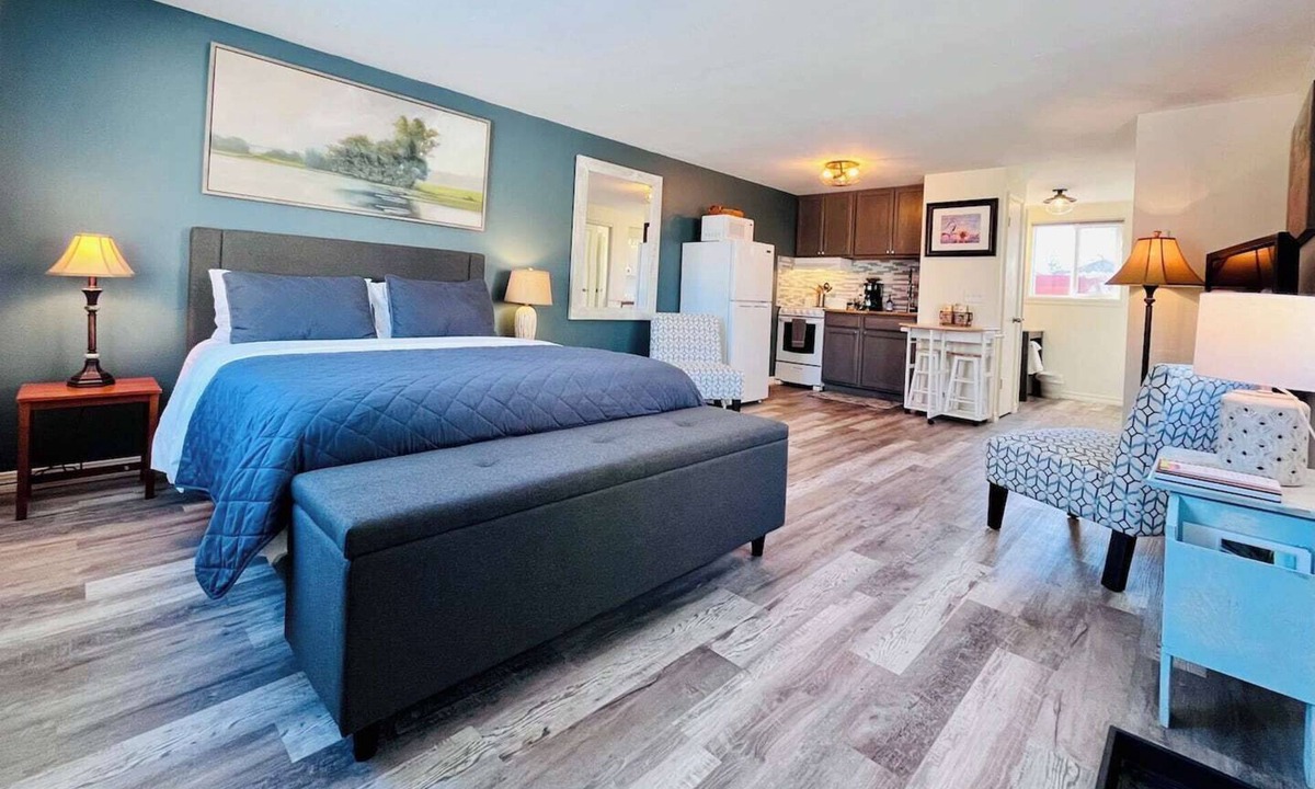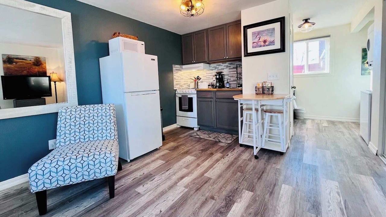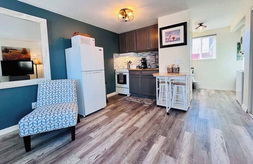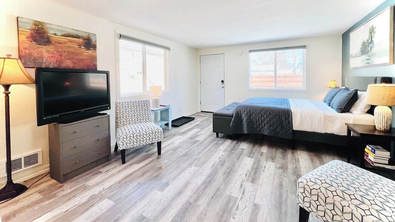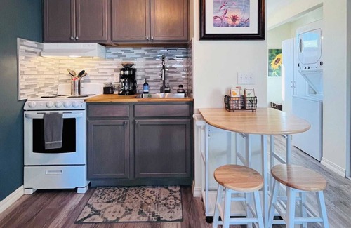 We think you’ll love our studio! Freshly renovated - inviting, bright and clean. A thoughtful, open layout makes great use of the space to include a compact kitchen, cozy seating, a queen bed, stacking laundry, full bath & smart storage. Perfect for a couple or solo traveler.