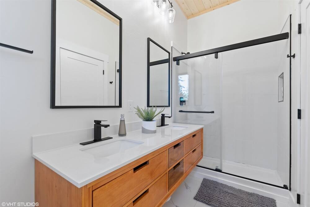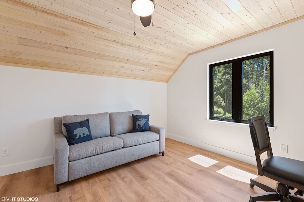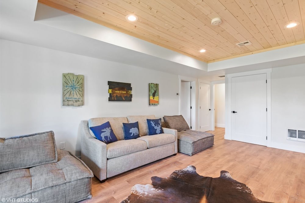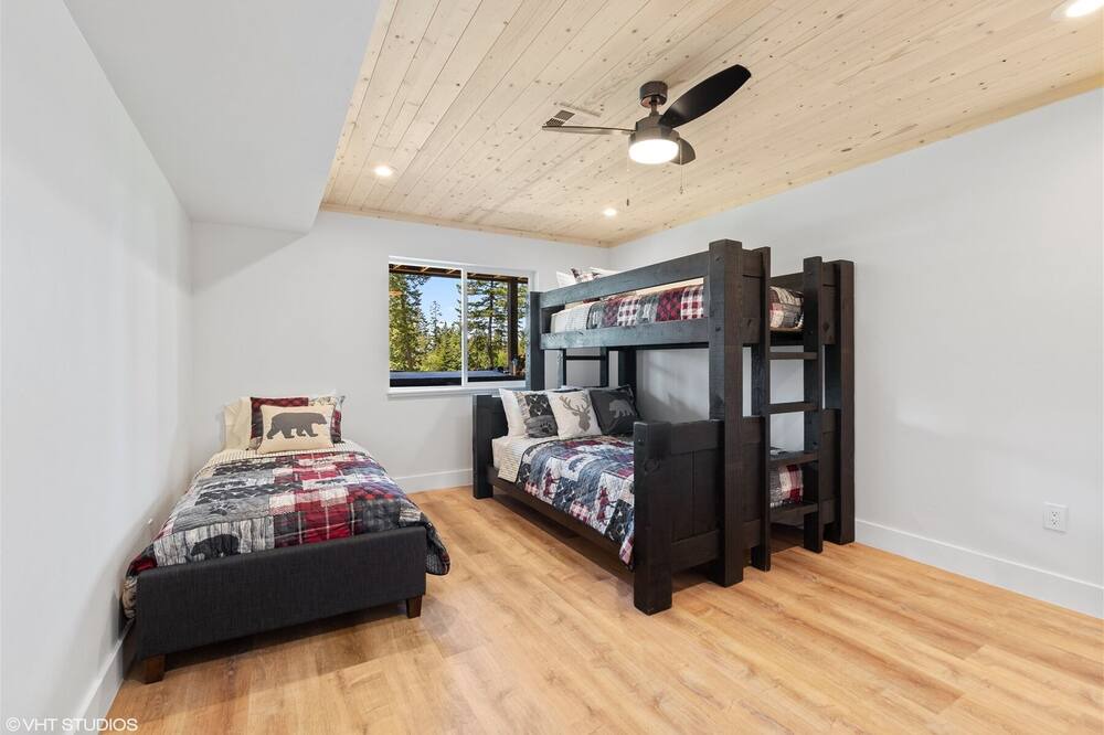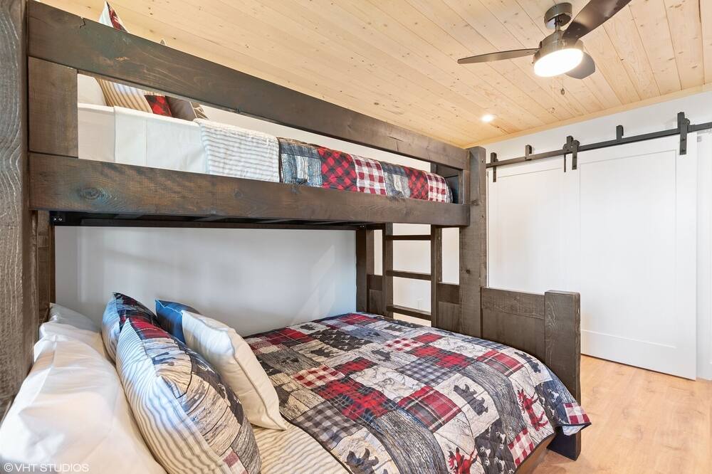 On the ground level, guests will find an additional living area with plenty of comfortable seating, which can conveniently be converted into a sleeping area. Friends and family can sink into the private hot tub on the patio before retiring to the 2 remaining bedrooms—1 guest bedroom with a comfy king bed and 1 bunk room that’s great for kids with its twin-over-queen bunk and twin bed. There’s also a laundry room for extended stays.