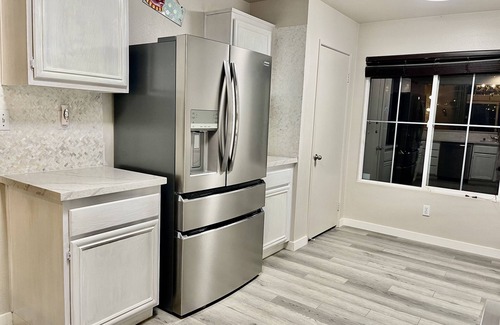 There are 4 private Bedrooms, 3 Baths, (1 King bdrm and bath on main level - no steps). 2 upstairs luxurious Queen beds and 1 CA King bed in Primary Suite, (Pack 'n Play available too). 3, 4K TV's. Some channels/programs may not be available and may require subscription. Free WiFi and state of the art home audio/music/news/weather with Amazon Echo (Alexa). Living Room and Dining area with 18 foot vaulted ceilings, walls of glass, sparkling Chandelier, gas fireplace, and an open kitchen. Kitchen has gas range, Stainless Steel refrigerator with ice maker, SS dishwasher, microwave, some complimentary coffees/teas/hot chocolate. Washer and Dryer are inside the home in the laundry room. No need to search for shopping, food and entertainment...Walking distance to AMC 24 Theaters, Vons Grocery Store (we recommend ordering grocery delivery), 2 Starbucks, WalMart/Grocery, Restaurants and many other Food/restaurant options! The Community Park is less than a 5 minute walk. Popular Outlet shopping is only a short, 3 mile drive! The closest beach is Imperial Beach, about 15 minutes down the road, which is also our favorite route to the Strand, and the beaches of Coronado and the famous, celebrity hangout, Hotel Del Coronado. Downtown SD, San Diego International Airport, the USS Midway, the world famous San Diego Zoo, Balboa Park & Museums, Old Town San Diego, Sea World, Military bases...all within a 20 minute drive. Sesame Place is less than 3 minutes away as is the North Island Credit Union Concert Amphitheater!