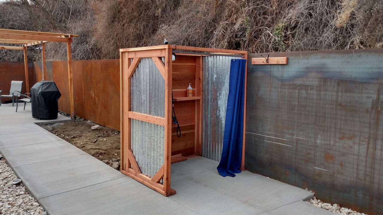 Lighted pergola covered patio with BBQ (w/ cookware and utensils)